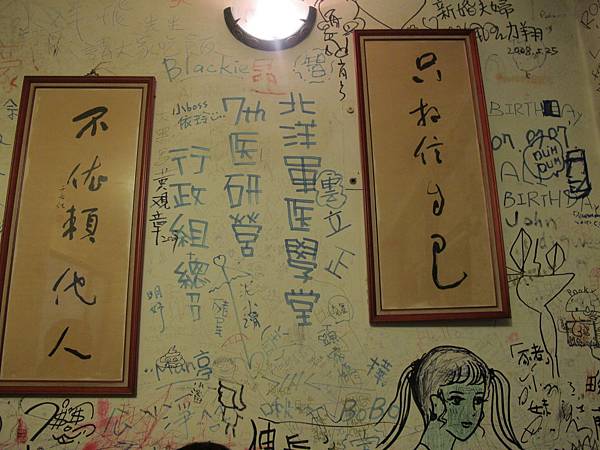 勺勺客的內部裝潢很有趣, 白色的牆壁加上天花板都被塗鴉的看不到白牆了. Interior Views - you can not find any blank walls in this restaurant. It has been scribbled up by the customers.