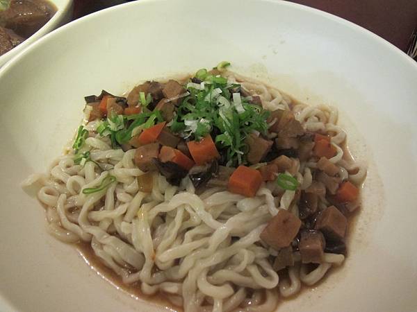 岐山躁子麵 ($90) - 微微的花椒醋汁與豬肉碎, 豆干丁, 木耳還有彈牙的麵條, 很受小朋友的歡迎. Dried Noodle - light vinegar with spicy chilli oil. The noodle was very chewy yet popular between the boys.