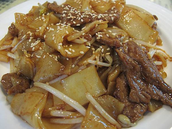 干炒牛肉河 ($100) - 加入醬青讓它看起來黑黑的. 不過吃起來味道頗淡. 牛肉很嫩, 河粉也不會炒地過軟. Stir Fried Beef Rice Noodle.