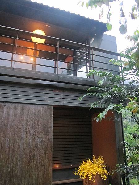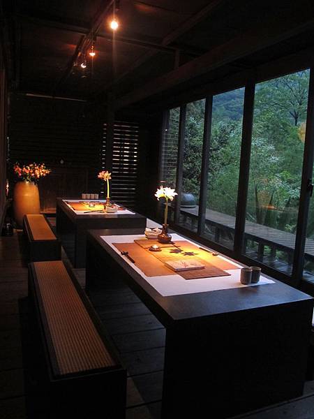 二樓面山的位置. 我們當晚就是坐在這兒. 可惜外面下雨, 不然可到陽台欣賞剛開的油桐花. Dining area on the second floor.