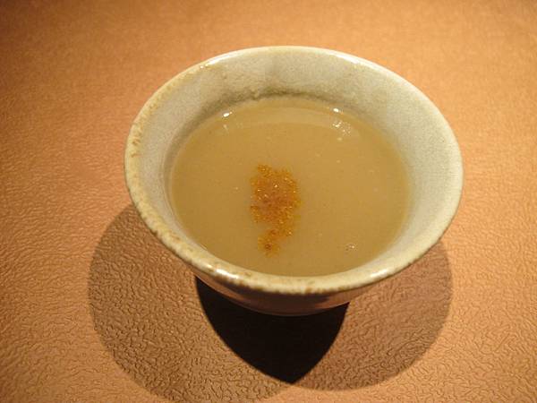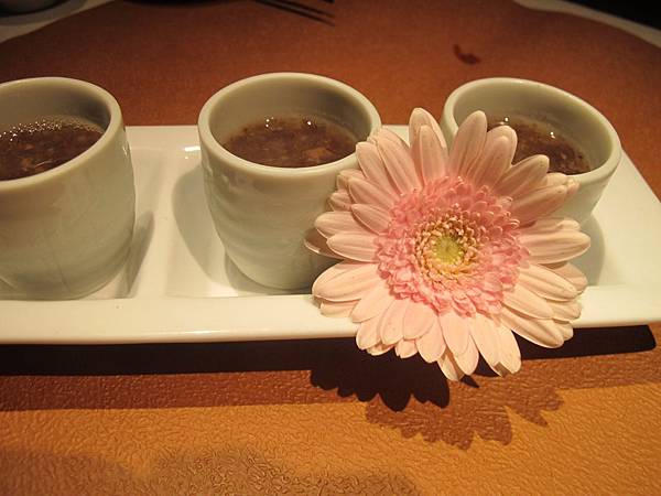 食養山房十分隱密的藏身在汐止山區, 和風景區 - 新山 夢湖是同一方向, 不過一路上沒有指標, 就連門前也沒有招牌. 真的是100%的隱密. 要不是有GPS帶路, 我們一定會錯過而直接開到新山 夢湖. 食養山房走的是日式與中式聯合的創意料理. 每位套餐$1,210, 食材新鮮, 豐富. 菜餚一道一道慢慢的上, 讓用餐的客人可一邊欣賞窗外美麗的山景, 享受美食與開心的聊天. 第一道是烏魚子蔬菜湯, 一喝就撲鼻的香氣及濃郁的湯頭, 在溼冷的晚餐時間喝非常適合. Shi-Yang is located in the midst of XiZhi mountains in New Taipei City. There is no signage nor road sign no the way, do not forget to set you GPS before you head out. The set meal costs $1,210 per head serving fusion dishes with a combination of Japanese and Chinese influence. You can easily wind down in Shi-Yang as soon as you step into its gate. The first dish to arrive was vegetable and mullet roe thick soup. It was very aromatic and rich. Great for a wet and cold dinner serving.