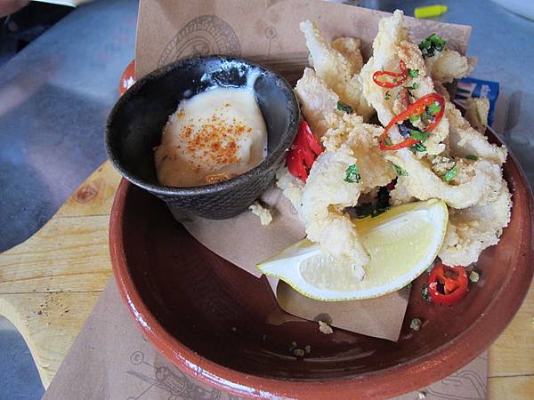 大家或許買過英國名廚Jamie Oliver的食譜, 或在TLC看過他的烹飪節目, Jamie Oliver今年夏天在新加坡的VivoCity開了亞洲第一間Jamie Italian, 大家去新加坡玩可順道去嘗鮮一番. 這回分享位於英國伯明罕(Birmingham)的Jamie's Italian. Jamie's Italian的pasta都是現場製作的, 麵條有嚼勁, 好吃! 我個人偏好較粗的pasta, 吸入pasta sauce, 吃得比較過癮. Entree點了Crispy Squid GBP5.75, 裹了薄薄的batter, 入鍋油炸, 外酥內嫩, 再沾上蒜味美乃滋與辣椒粉, 很好吃歐! 不過跟二年前初訪相比, 份量少了許多. 這張照片可不是我們吃了一半才照的歐! Fried squid with garlicky mayo, lemon and chilli - crispy on the outside with fresh and tender squid inside. I order this dish on my every single visit.