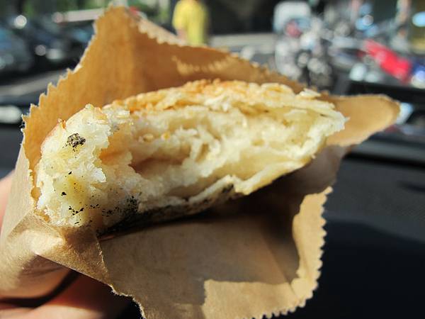 位於文湖線上, 捷運麟光站的和記燒餅沒有華麗的裝潢, 堅持的是手工的美味. 主打的厚燒餅, 甜以及鹹的酥餅都帶有濃濃的炭香, 餅上滿滿的白芝麻, 香味直撲腦門. 和記燒餅厲害的是它的傳統好味道. 老闆不疾不徐的用炭烤着一個個的手工燒餅/酥餅, 若烤焦了, 他眉頭皺也不皺就把它淘汰. 老闆的堅持, 造就了絡繹不絕的死忠食客. 值得一提的是它的豆漿, 自家煮的豆漿已經很少見了, 在和記還可以喝到淡淡的黃豆焦香味, 十分值得嘉許. This traditional Chinese bakery is literally next to Linguang MRT station. No fency deco, just old fashioned yet tasty traditional Chinese pastries that has won many people's hearts. It may not be as famous as Fu Hang but this place has won my vote. I also recommend its homemade soy milk. 鎮店之寶 - 厚燒餅 $20 Thick Savory Chinese Pastry