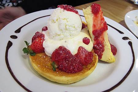 野莓鬆餅 $280 (季節限定) - 新鮮的野莓, 香草冰淇淋和自家製的cheesecake, 豐盛的搭配, 賞心悅目, 真是好吃又好看! Mixed Berry Pancake (seasonal) - fresh mixed berries with vanilla ice-cream and cheesecake. Visually attractive with great taste.