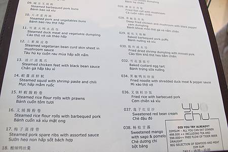 胡志明市內的五星級‘洲際酒店’ InterContinental Asian Saigon, 二樓的Yu Cho有知名的港式飲茶吃到飽. 午餐的價位為388,000VDN++(須再加服務費與稅金), 晚餐的價位為498,000VDN++, 有38種港式點心任你吃, 很多道點心都是在水準之上. 用餐環境舒適高級, 非常推薦想暫時與喧鬧的胡志明市隔離一陣子的食客朋友們. 咸水餃 - 外皮炸得酥脆, 不會過硬. Yu Cho Cantonese Restaurant is loacted on the first floor of InterContinental Asian Saigon in the heart of Ho Chi Minh City, Vietnam. Yu Cho offers daily all you can eat dim sum at 388,000VDN++ and 498,000++ for lunch and dinner respectively. It offers good dim sum with excellent service and deco. A great place to dine if you want to step away from the hectic HCM City traffic.